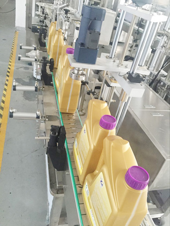 設備描述:潤滑油灌裝旋蓋一體機為活塞式計量方式。計量范圍為1升-5升,離合式旋蓋結構,確保旋蓋合格率高,不傷蓋。本設備為灌裝旋蓋一體機,結構緊湊,性價比高。該型號灌裝機適用于醫(yī)藥、日化、食品、農(nóng)藥及特殊行業(yè),是對酒精等液體進行灌裝的理想設備。