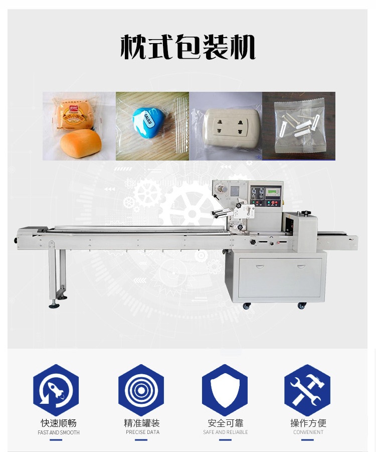 1.枕式包裝機(jī)是目前國內(nèi)新型的自動連續(xù)收縮 包裝設(shè)備,采用石英遠(yuǎn)紅外管加熱,節(jié)電高效(節(jié)電15%以上);