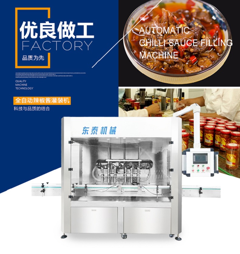 辣椒醬起源于印度尼西亞 選用新鮮辣椒和配料所調(diào)制可用做烹調(diào)菜、配蝦和其他海鮮或蘸食物,中國關(guān)于辣椒的記載是明代高濂撰《遵生八箋》,在明朝末年傳入中國。隨著辣椒醬的傳入,再加上1984年,老干媽的推出,現(xiàn)如今辣椒醬可是人們餐桌上離不開的一道美食了,辣椒醬好吃又美味,但是辣椒醬是如何灌裝的呢?這就要用到我們推出的辣椒醬福利!辣椒醬灌裝機(jī)了。
