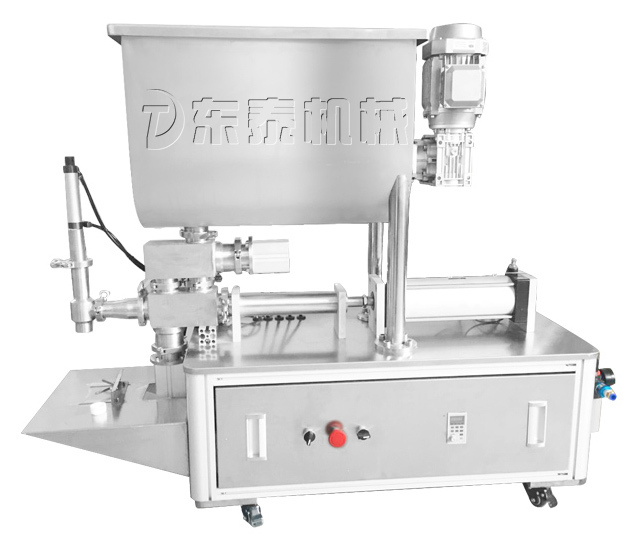 DTG-500-DV型半自動辣椒醬灌裝機(jī)結(jié)構(gòu)合理、機(jī)型小巧、性能可靠、定量準(zhǔn)確、操作方便,動力部分采用氣動結(jié)構(gòu),均采用國內(nèi)知名氣動元件。物料接觸部分均采用304不銹鋼材料制成,符合GMP認(rèn)證的要求。采用加大攪拌料斗,料斗容積可達(dá)120L,立的全鋁外殼銅芯攪拌電機(jī),變頻調(diào)速,可適應(yīng)于各種醬料的灌裝。可根據(jù)用戶需要在機(jī)型范圍內(nèi)任意調(diào)節(jié)灌裝量及灌裝速度,灌裝精度高。灌裝悶頭采用防滴漏裝置。