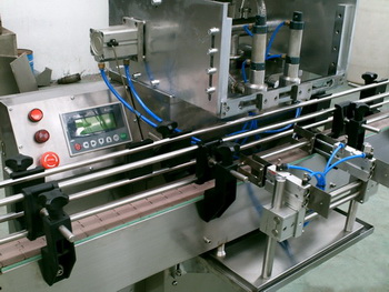 本機與物料接觸均為不銹鋼制作,完全符合GMP標(biāo)準(zhǔn)??焖倩罱舆B接,拆洗方便,灌裝量、灌裝速度均可調(diào)節(jié),更 換不同規(guī)格形狀的瓶子,不需更換零件,調(diào)整容易。另灌裝頭設(shè)有防滴漏裝置,灌裝無拉絲、滴漏;有瓶灌裝、無瓶不灌裝;設(shè)有計數(shù)功能,能準(zhǔn)確顯示當(dāng)前產(chǎn)量、 前班產(chǎn)量;并備有自動加料控制接口,實現(xiàn)對加料的自動控制。各動作平穩(wěn)、準(zhǔn)確無誤,是目前較為理想的機電氣一體化產(chǎn)品。(該設(shè)備需要配備輔助設(shè)備:真空泵,真空儲氣罐)